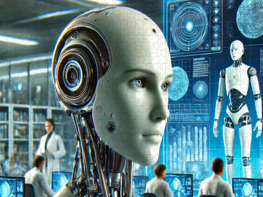 Tauche ein in die faszinierende Welt der künstlichen Intelligenz und Technologie. Dieses hochwertige Puzzle oder die stilvolle Leinwand zeigt ein...