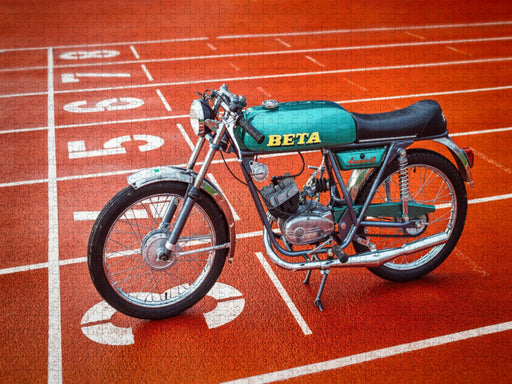 Beta Camoscio 48 im Stadion Das Beta-Rennmoped ist für die Straße gemacht. Klein, leicht, kräftig, zierlich lässt sie Ihren Fahrer locker durch di...