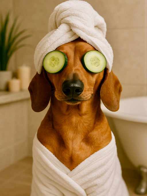 Wellness wie ein Profi: Dieser Dackel zeigt, wie Entspannung funktioniert – mit Handtuchturban, Gurkenscheiben und jeder Menge Stil. „Dackel Delu...