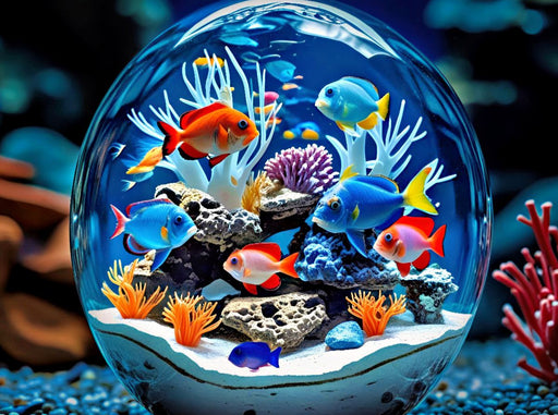 Glaskugel Ein Aquarium in einer Glaskugel ist eine faszinierende Miniwelt – rund, transparent und voller Leben. Es vereint Ästhetik und Natur in e...