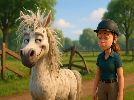 Alltag mit dem Pferd Mädchen brauchen ein Hoppi“ zeigt mit KI-gestalteten Bildern die lustigsten und chaotischsten Momente zwischen Pferd und Reit...