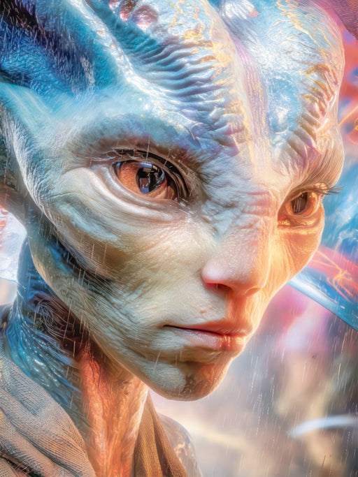 Alienportrait Tauchen Sie ein in eine Galaxie ki-generierter Werke. Imposante Raumschiffe, ein hochentwickelter Flugraumanzug und fremde Alien-Por...