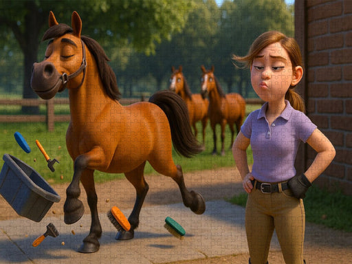 Alltag mit dem Pferd Mädchen brauchen ein Hoppi“ zeigt mit KI-gestalteten Bildern die lustigsten und chaotischsten Momente zwischen Pferd und Reit...