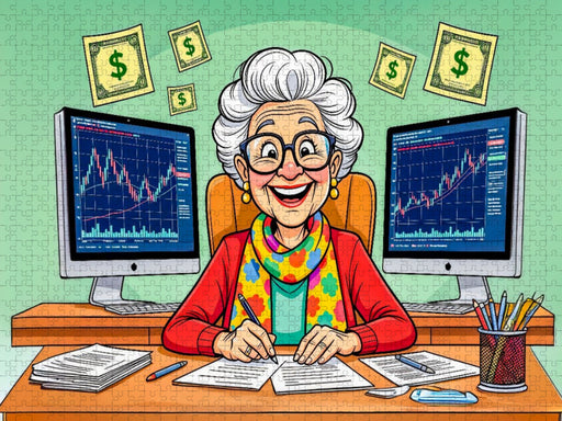 Vollständige Details anzeigenOma zockt am Aktienmarkt - CALVENDO Foto-Puzzle'