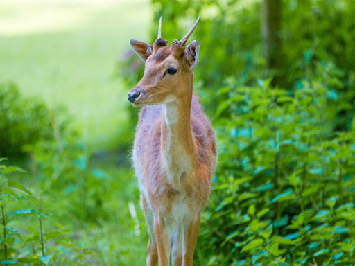 Rehe - Sanfte Waldbewohner In einer friedlichen Waldlandschaft steht ein Reh aufmerksam zwischen Bäumen und Gräsern. Die natürliche Umgebung strah...