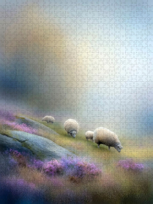 Vollständige Details anzeigenSchafe am Berghang - fast verschwunden, ganz präsent - CALVENDO Foto-Puzzle'
