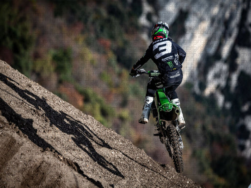 Auf seiner Kawasaki Setzen Sie Teil für Teil ein Stück Motocross-Geschichte zusammen: Dieses detailreiche Puzzle zeigt Romain Febvre in Aktion – d...