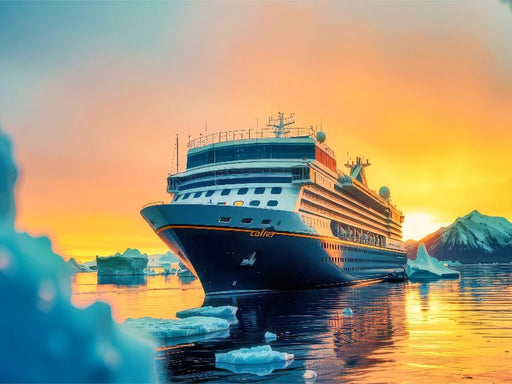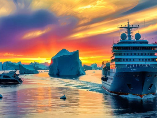Kreuzfahrtschiff vor Grönland Wo Eisberge Geschichten flüstern. Erleben Sie die majestätische Stille Grönlands vom Deck eines luxuriösen Kreuzfahr...