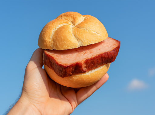 Hand hält Leberkässemmel vor blauem Himmel - CALVENDO Foto-Puzzle'