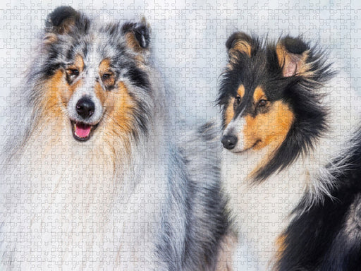 Ein traumhaft schöner blue merle Rüde und eine entzückende tricolour Hündin - ein schönes Collie-Paar Ob als Puzzle oder Leinwand - Lassen Sie sic...