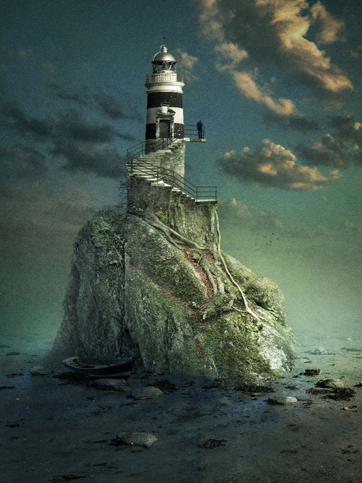 Ein Ort, der schweigt, aber alles sagt Ein Bild über Entfernung und Nähe, über das Alleinsein und das Dasein. Ein Leuchtturm auf rauhem Fels, umge...