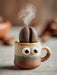So sieht Koffein in Reinform aus! Dieser aufgedrehte kleine Espresso schaut mit großen Augen in die Welt und trägt zwei riesige, dampfende Kaffeebohnen wie eine Turbofrisur auf dem Kopf. Das schlichte, stilvolle Setting mit warmen Erdtönen betont die Kraft und den Charakter dieses humorvollen Motivs. Perfekt für Kaffeejunkies, Morgenmuffel und alle, die ein bisschen Energie mit Augenzwinkern in ihre Räume bringen möchten. Ideal für Küche, Kaffeebar oder Büro – dieses Bild ist wie ein doppelter Espresso für die Wand. Bild mit KI generiert