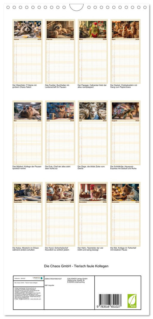 Vollständige Details anzeigenDie Chaos GmbH - Tierisch faule Kollegen (CALVENDO Familienplaner 2026)