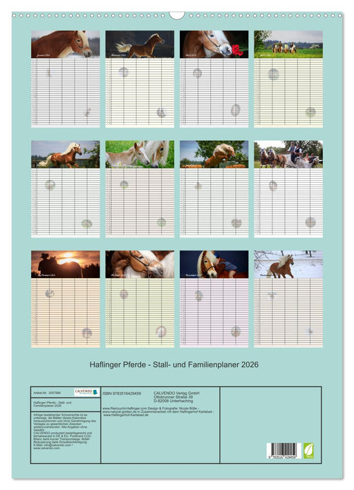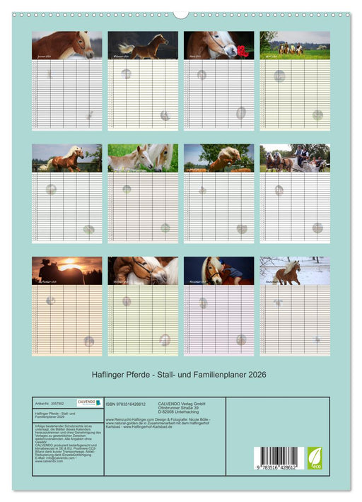 Haflinger Pferde - Stall- und Familienplaner 2026 (CALVENDO Premium Wandkalender 2026)