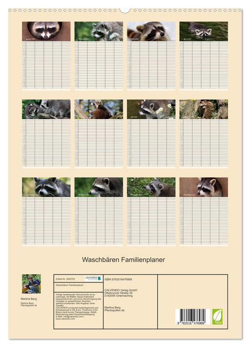 Vollständige Details anzeigenWaschbären Familienplaner (CALVENDO Premium Wandkalender 2026)