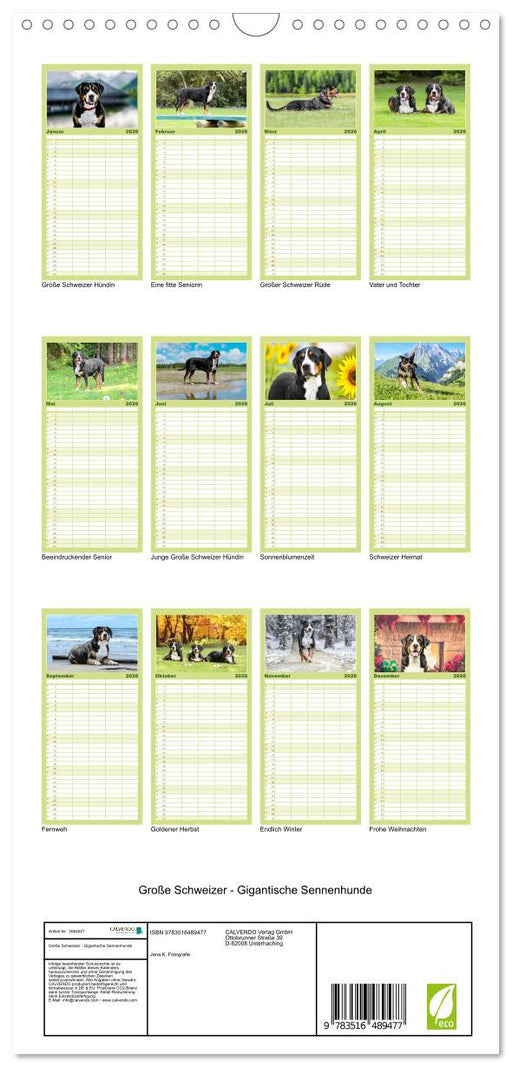 Vollständige Details anzeigenGroße Schweizer - Gigantische Sennenhunde (CALVENDO Familienplaner 2026)