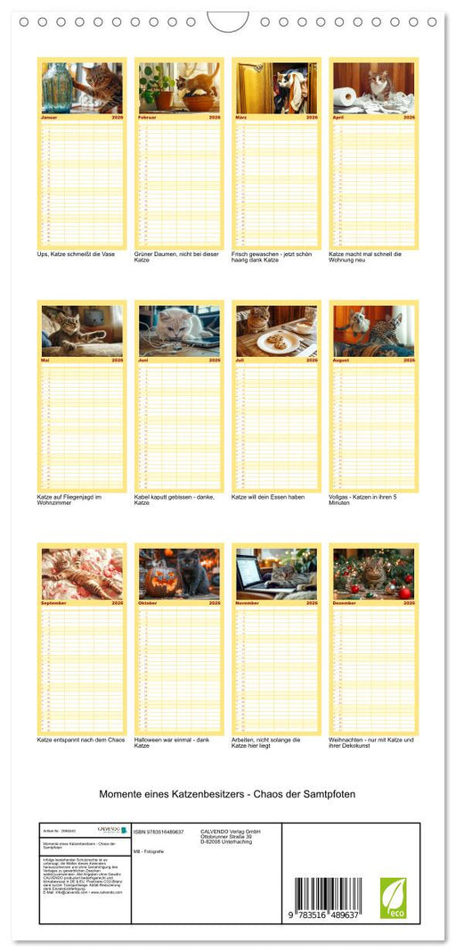 Vollständige Details anzeigenMomente eines Katzenbesitzers - Chaos der Samtpfoten (CALVENDO Familienplaner 2026)