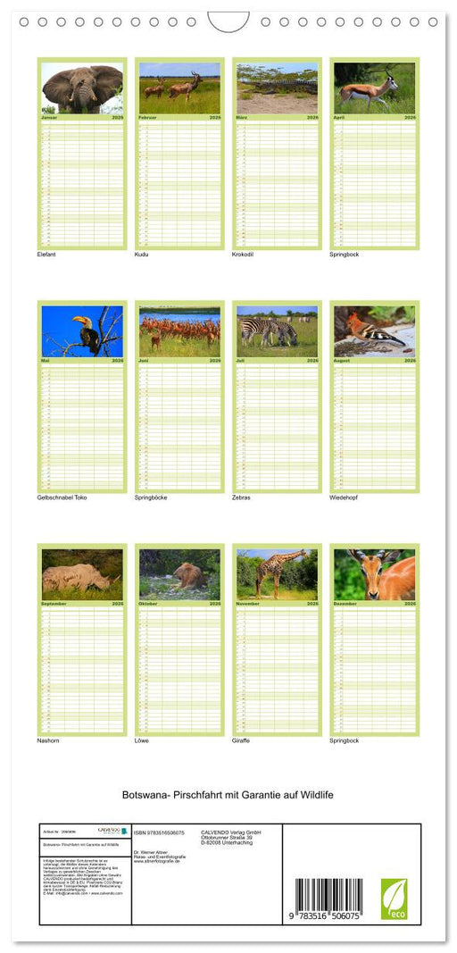 Vollständige Details anzeigenBotswana- Pirschfahrt mit Garantie auf Wildlife (CALVENDO Familienplaner 2026)