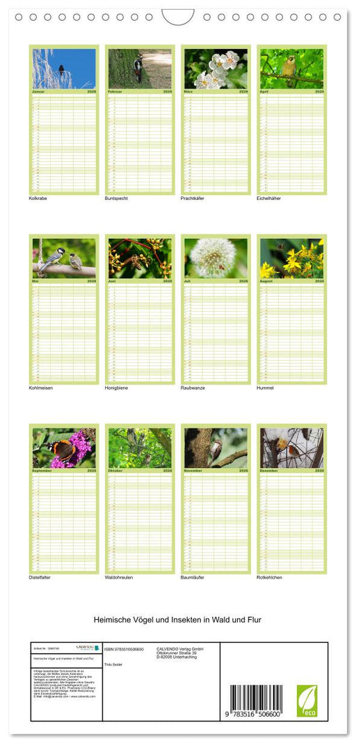 Vollständige Details anzeigenHeimische Vögel und Insekten in Wald und Flur (CALVENDO Familienplaner 2026)