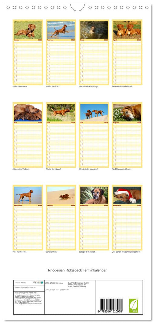 Rhodesian Ridgeback Terminkalender (CALVENDO Familienplaner 2026)