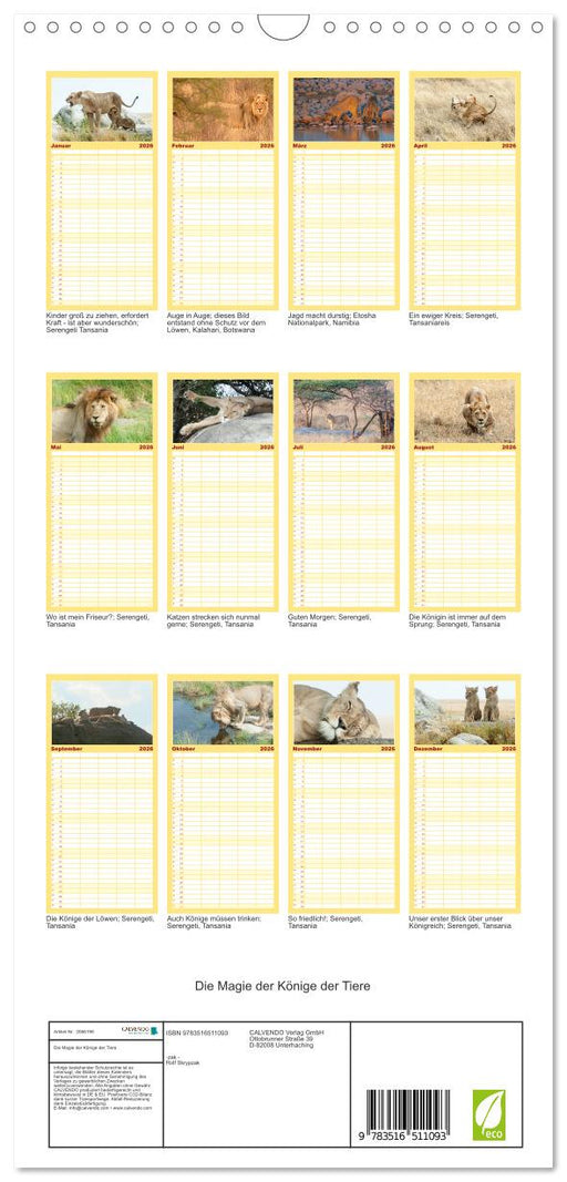 Vollständige Details anzeigenDie Magie der Könige der Tiere (CALVENDO Familienplaner 2026)