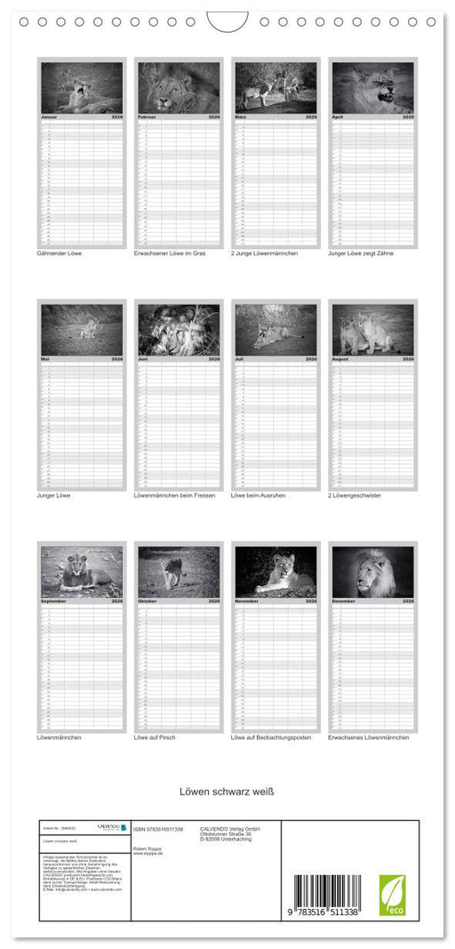 Vollständige Details anzeigenLöwen schwarz weiß (CALVENDO Familienplaner 2026)