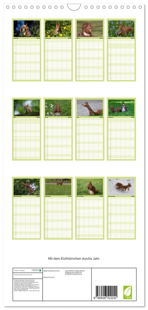 Vollständige Details anzeigenMit dem Eichhörnchen durchs Jahr (CALVENDO Familienplaner 2026)