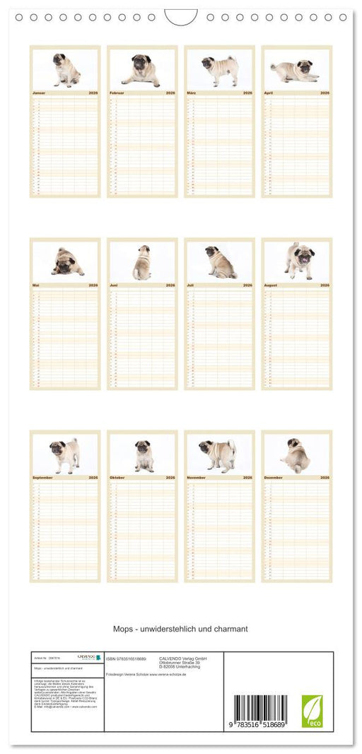 Vollständige Details anzeigenMops - unwiderstehlich und charmant (CALVENDO Familienplaner 2026)