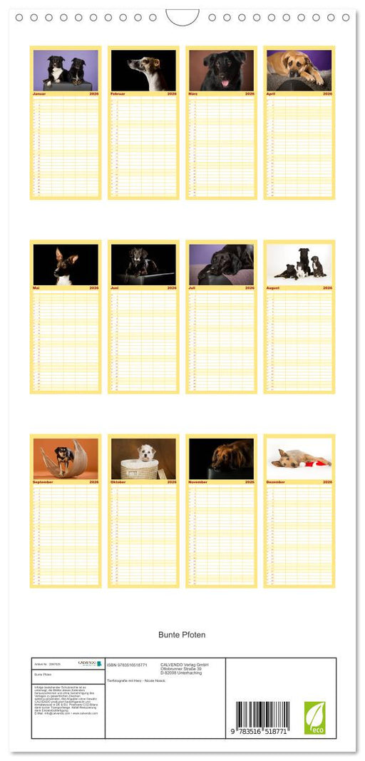 Vollständige Details anzeigenBunte Pfoten (CALVENDO Familienplaner 2026)