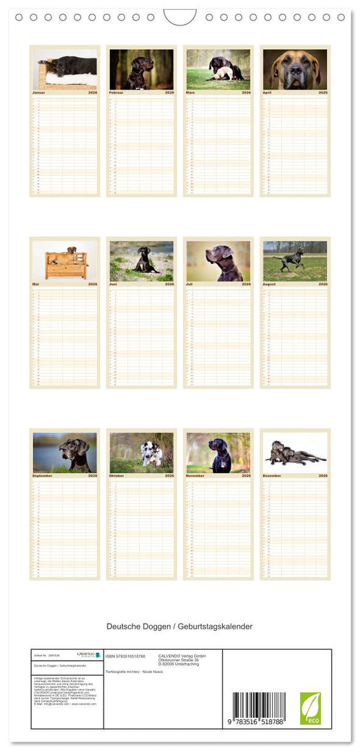 Vollständige Details anzeigenDeutsche Doggen / Geburtstagskalender (CALVENDO Familienplaner 2026)