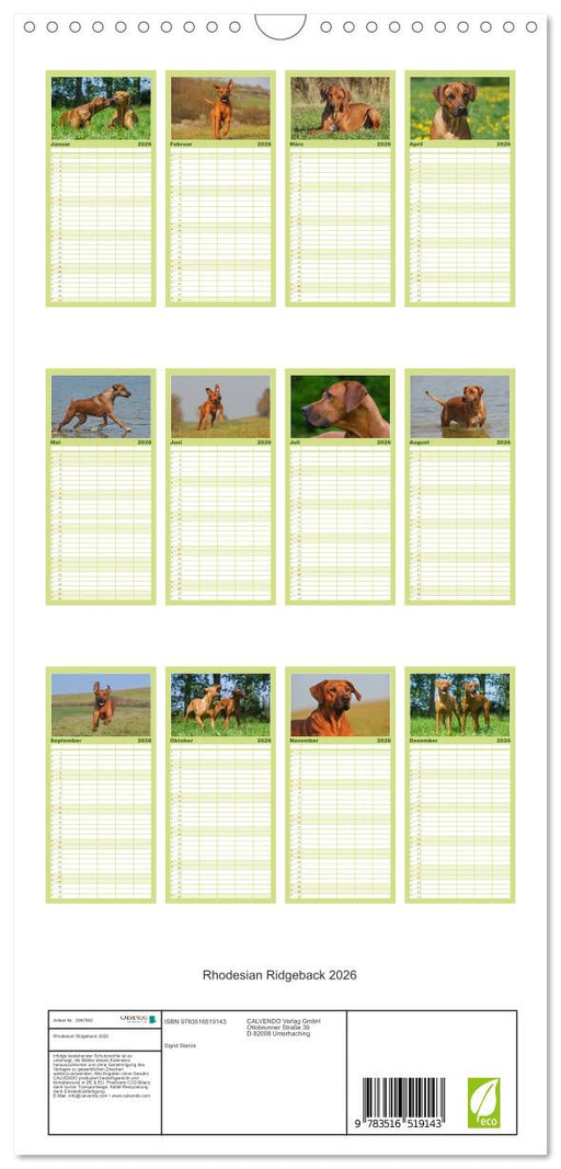 Vollständige Details anzeigenRhodesian Ridgeback 2026 (CALVENDO Familienplaner 2026)
