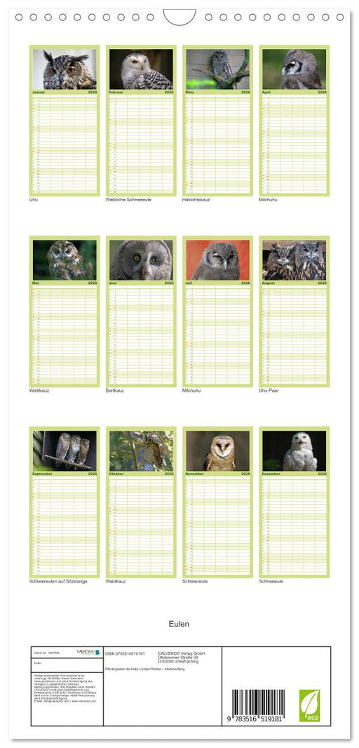 Vollständige Details anzeigenEulen (CALVENDO Familienplaner 2026)