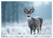 Januar: Ein Rehbock steht im frostigen Feld