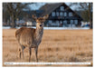 Dezember: Ein Damhirsch steht im Schneefeld