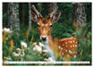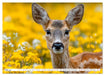 Mai: Ein Rehkitz steht in Frühlingsblumen