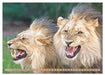 April: Löwe (Panthera leo), noch nicht ganz ausgewachsene Männchen bilden Rudel und ziehen ohne Revier umher, Kgalagadi Transfrontier Park, Kalahari, Südafrika