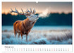 Februar: Ein röhrender Hirsch im frostigen Morgengrauen – Naturgewalt in stiller Kulisse