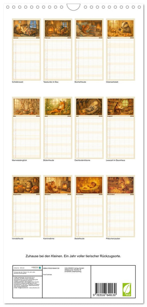 Vollständige Details anzeigenZuhause bei den Kleinen. Ein Jahr voller tierischer Rückzugsorte. (CALVENDO Familienplaner 2026)