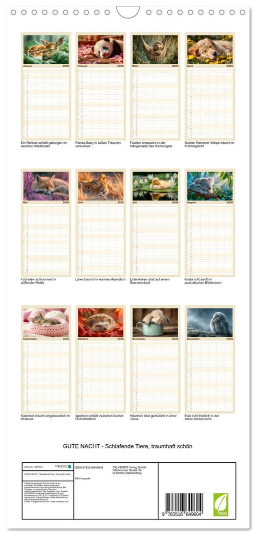 Vollständige Details anzeigenGUTE NACHT - Schlafende Tiere, traumhaft schön (CALVENDO Familienplaner 2026)