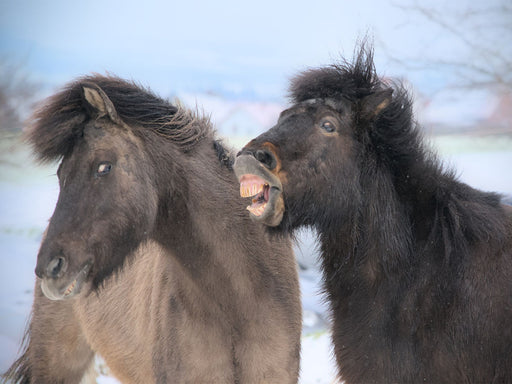 Portrait von zwei Islandpferden beim Spielen Ein Motiv aus dem Kalender "Verspielte Islandpferde Kopf an Kopf" von Brinja Schmidt: Ein vielseitige...