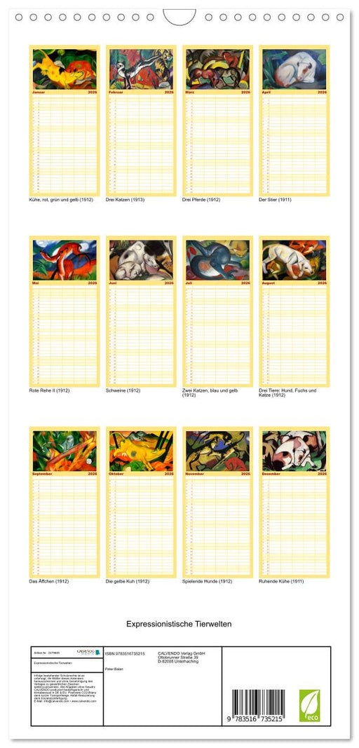 Vollständige Details anzeigenExpressionistische Tierwelten (CALVENDO Familienplaner 2026)