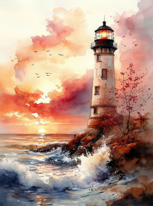 Entdecke die zauberhafte Welt der Aquarell-Leuchttürme mit unserem atemberaubenden Bild, das sowohl als Puzzle als auch als Leinwand erhältlich i...