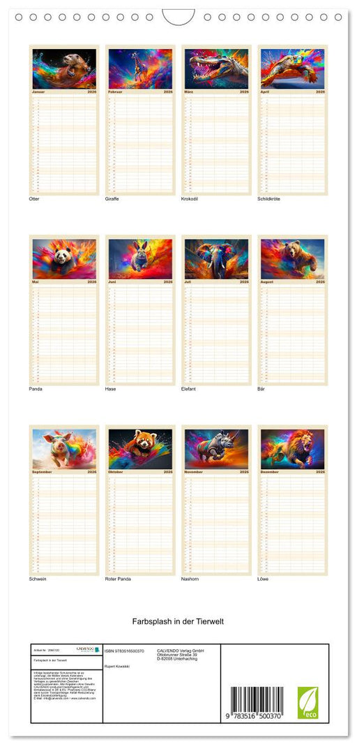Vollständige Details anzeigenFarbsplash in der Tierwelt (CALVENDO Familienplaner 2026)