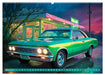 Detailreiche, retro-inspirierte Bilder klassischer amerikanischer Autos aus den 1940er bis 1970er Jahren (Monatskalender, 14 Seiten)