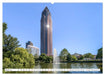 April: Messeturm mit der Ludwig-Erhard-Anlage
