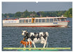 Juni: Ein Schiff der 5 Seen Fahrt passiert schwimmende Kunstkühe