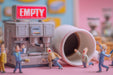Eine Gruppe von Bürofiguren steht entsetzt vor einer streikenden Kaffeemaschine. Die Störung im Versorgungssystem wirkt hier wie ein echter Notfall. Künstliche Intelligenz hat die Szene mit ironischem Blick auf Prioritäten im Büroalltag bildlich überhöht.