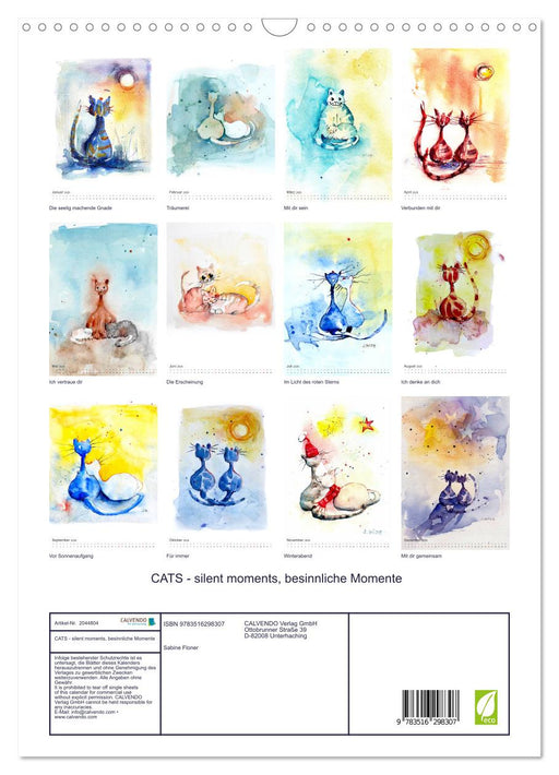 Katzen, Zeichnungen, Aquarelle (Monatskalender, 14 Seiten) Zwölf Katzen-Aquarelle von besinnlichen Momenten. Stimmungen bei denen man gerne die Ze...