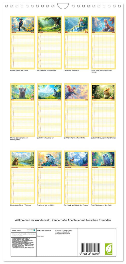 View full detailsWillkommen im Wunderwald. Zauberhafte Abenteuer mit tierischen Freunden (CALVENDO Familienplaner 2026)