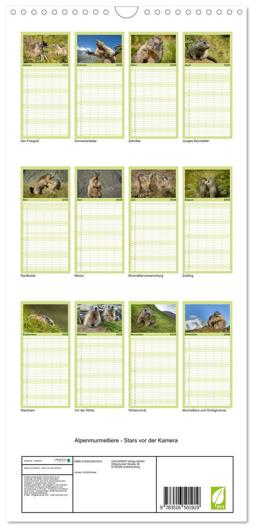 View full detailsAlpenmurmeltiere - Stars vor der Kamera (CALVENDO Familienplaner 2026)